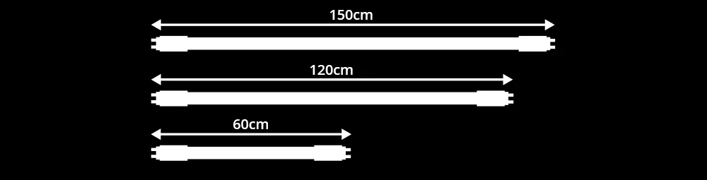 Die meisten T8 LED-Röhren kommen in den Längen 60 cm, 90 cm, 120 cm sowie 150 cm vor. T5 LED-Röhren hingegen sind in der Regel 55 cm, 115 cm und 145 cm lang. Sie möchten zu LED-Röhren wechseln? Dann überprüfen Sie unbedingt die Länge von Ihren derzeitigen Leuchtstoffröhren. Sie möchten mehr über LED-Röhren erfahren? Dann schauen Sie in unserem Blog vorbei!