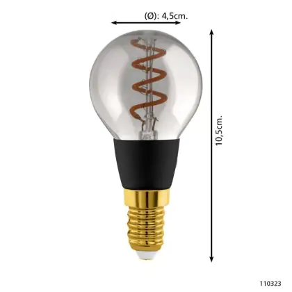 Description Eglo Connect.Z Smart LED Boule E14 Filament Smokey 4W 150lm - 820 Blanc Très Chaud | Dimmable - Remplacement 15W