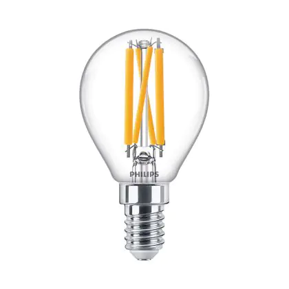 Cette ampoule rétro Philips Master Value LED Lustre E14 Boule Filament Claire 3.4W 470lm - 927 Blanc Très Chaud | Meilleur rendu des couleurs - Dimmable - Équivalent 40W est l’alternative idéale pour la remplacement de votre ampoule classique de 40 W. La technologie LED intégrée vous offrira de nombreux avantages. Les ampoules à incandescence traditionnelles ont une durée de vie limitée. Cette alternative LED vous permettra de profiter d’un éclairage durable et fiable.